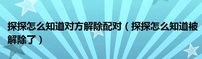 探探怎么知道对方解除配对(探探怎么知道被解除了)