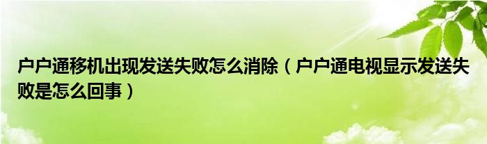 户户通移机出现发送失败怎么消除(户户通电视显示发送失败是怎么回事)