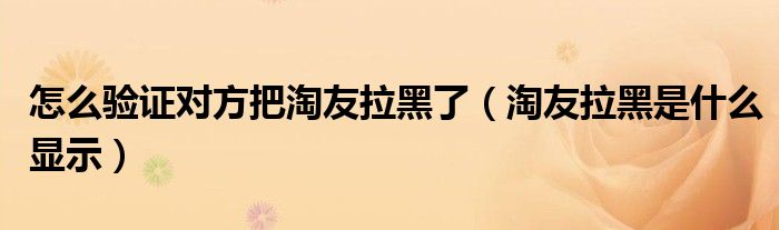大家好,跳跳为你解答以上问题。怎么验证对方把淘友拉黑了,淘友拉黑是什么显示这个问题很多人还不知道,现在让我们一起来看看吧!