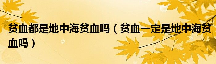 大家好,linda来为大家解答以上的问题。贫血都是地中海贫血吗,贫血一定是地中海贫血吗很多人还不知道,现在让我们一起来看看吧!