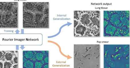 加州大学洛杉矶分校的研究人员最近创建了一种称为傅立叶成像网络(FIN)的新型神经网络架构,它展示了对看不见的样本类型的前所未有的泛化能力,还在相位检索和全息图像重建任务中实现了卓越的计算速度。在这种新方法中,他们引入了空间傅里叶变换模块,使神经网络能够利用整个图像的空间频率。加州大学洛杉矶分校的研究人员在人类肺组织样本上训练了他们的FIN模型,并通过重建人类前列腺和唾液腺组织切片的全息图以及在训练阶段从未见过的巴氏涂片样本证明了其优越的泛化能力。