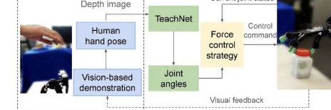 “在这项研究中,我们还想在机器人手上采用力控制,”曾说。“然而,直接训练深度神经网络 (DNN) 以在运行时为机器人生成所需的力控制命令具有挑战性。为了解决这个问题,我们采取了两步法。”