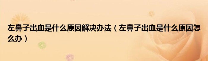 1、左鼻出血的原因首先要查血常规,排除血液系统疾病;还要区分儿童流鼻血和成人流鼻血。