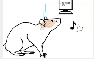 只需将16个电极植入12只大鼠的视皮层(V1)中。他将电极记录的电活动(代表几个神经元的尖峰信号)任意路由到一个设备,该设备根据哪个神经元处于活动状态来提高或降低可听音的音调。