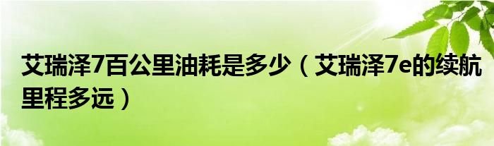 大家好,阳阳来为大家讲解下。艾瑞泽7百公里油耗是多少,艾瑞泽7e的续航里程多远很多人还不知道,现在让我们一起来看看吧!