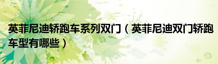 大家好,阳阳来为大家讲解下。英菲尼迪轿跑车系列双门,英菲尼迪双门轿跑车型有哪些很多人还不知道,现在让我们一起来看看吧!