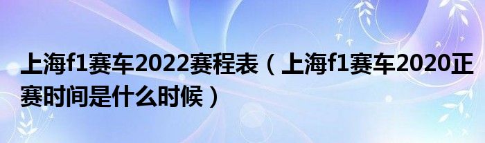 大家好,阳阳来为大家讲解下。上海f1赛车2022赛程表,上海f1赛车2020正赛时间是什么时候很多人还不知道,现在让我们一起来看看吧!