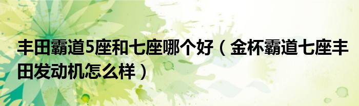 大家好,阳阳来为大家讲解下。丰田霸道5座和七座哪个好,金杯霸道七座丰田发动机怎么样很多人还不知道,现在让我们一起来看看吧!