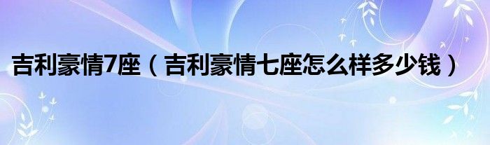 大家好,阳阳来为大家讲解下。吉利豪情7座,吉利豪情七座怎么样多少钱很多人还不知道,现在让我们一起来看看吧!