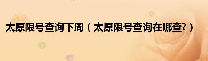 大家好,小美来为大家解答以上问题。太原限号查询下周,太原限号查询在哪查?很多人还不知道,现在让我们一起来看看吧!