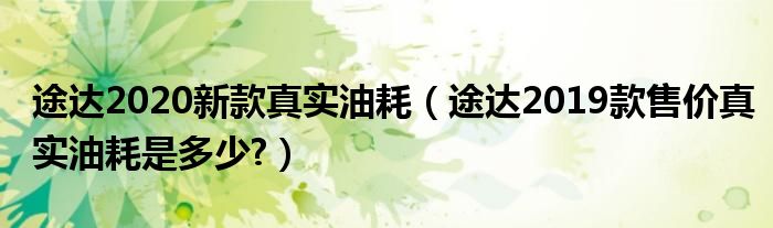 大家好,小美来为大家解答以上问题。途达2020新款真实油耗,途达2019款售价真实油耗是多少?很多人还不知道,现在让我们一起来看看吧!