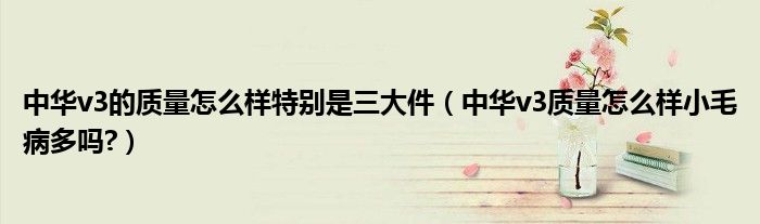 大家好,小美来为大家解答以上问题。中华v3的质量怎么样特别是三大件,中华v3质量怎么样小毛病多吗?很多人还不知道,现在让我们一起来看看吧!