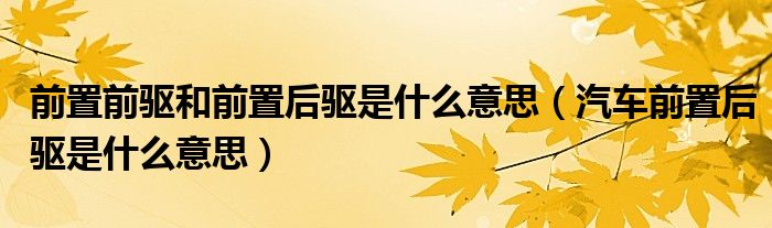大家好,小美来为大家解答以上问题。前置前驱和前置后驱是什么意思,汽车前置后驱是什么意思很多人还不知道,现在让我们一起来看看吧!