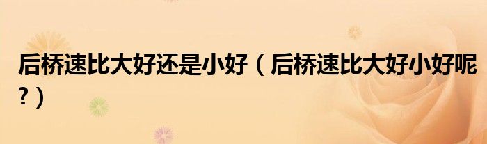 后桥速比大好还是小好(后桥速比大好小好呢?)