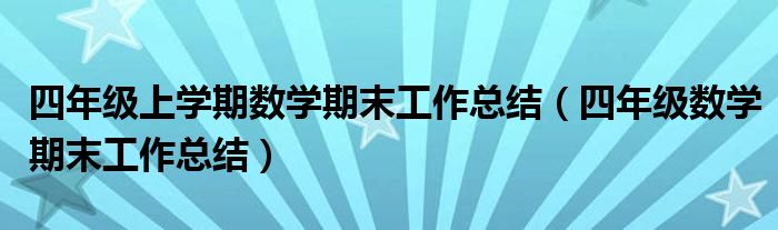 关于四年级上学期数学期末工作总结,四年级数学期末工作总结这个很多人还不知道,今天菲菲来为大家解答以上的问题,现在让我们一起来看看吧!