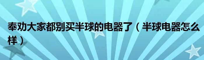 奉劝大家都别买半球的电器了(半球电器怎么样)