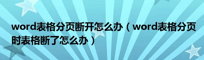 word表格分页断开怎么办(word表格分页时表格断了怎么办)
