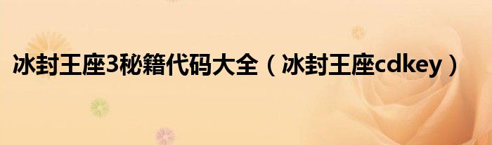 关于冰封王座3秘籍代码大全,冰封王座cdkey这个很多人还不知道,今天菲菲来为大家解答以上的问题,现在让我们一起来看看吧!