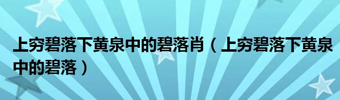 关于上穷碧落下黄泉中的碧落肖,上穷碧落下黄泉中的碧落这个很多人还不知道,今天菲菲来为大家解答以上的问题,现在让我们一起来看看吧!