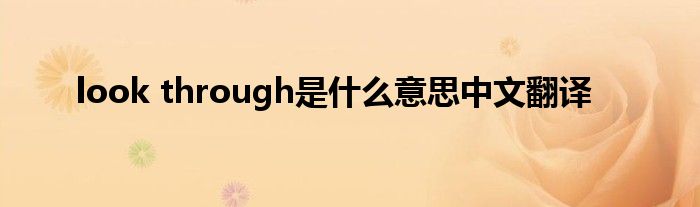 关于look through是什么意思中文翻译这个很多人还不知道,今天菲菲来为大家解答以上的问题,现在让我们一起来看看吧!