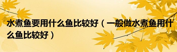 关于水煮鱼要用什么鱼比较好,一般做水煮鱼用什么鱼比较好这个很多人还不知道,今天菲菲来为大家解答以上的问题,现在让我们一起来看看吧!