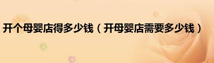 开个母婴店得多少钱(开母婴店需要多少钱)