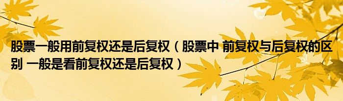 关于股票一般用前复权还是后复权,股票中 前复权与后复权的区别 一般是看前复权还是后复权这个很多人还不知道,今天菲菲来为大家解答以上的问题,现在让我们一起来看看吧!