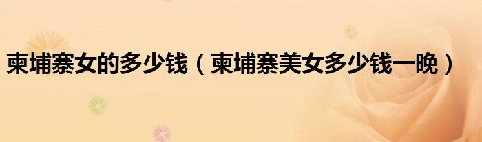柬埔寨女的多少钱(柬埔寨美女多少钱一晚)