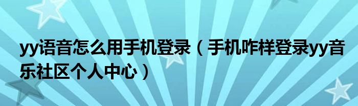 关于yy语音怎么用手机登录,手机咋样登录yy音乐社区个人中心这个很多人还不知道,今天菲菲来为大家解答以上的问题,现在让我们一起来看看吧!