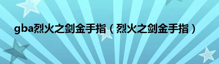 gba烈火之剑金手指(烈火之剑金手指)