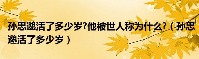 孙思邈活了多少岁?他被世人称为什么?(孙思邈活了多少岁)