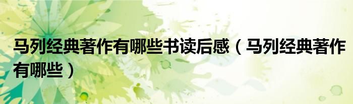 关于马列经典著作有哪些书读后感,马列经典著作有哪些这个很多人还不知道,今天菲菲来为大家解答以上的问题,现在让我们一起来看看吧!