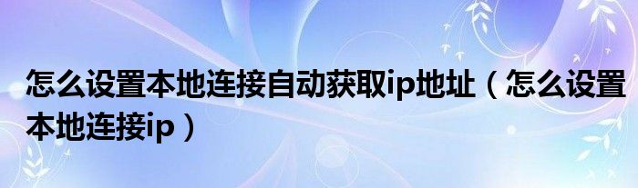 大家好,来宝来为大家解答以下问题,怎么设置本地连接自动获取ip地址,怎么设置本地连接ip很多人还不知道,今天让我们一起来看看吧!