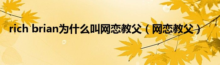 大家好,小晋来为大家解答以下问题,关于rich brian为什么叫网恋教父,网恋教父很多人还不知道,今天让我们一起来看看吧!