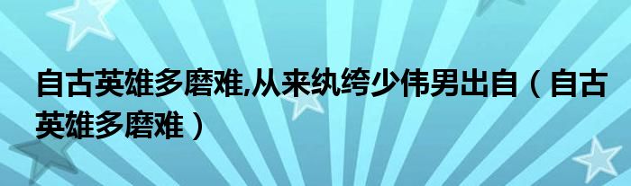 自古英雄多磨难,从来纨绔少伟男出自(自古英雄多磨难)