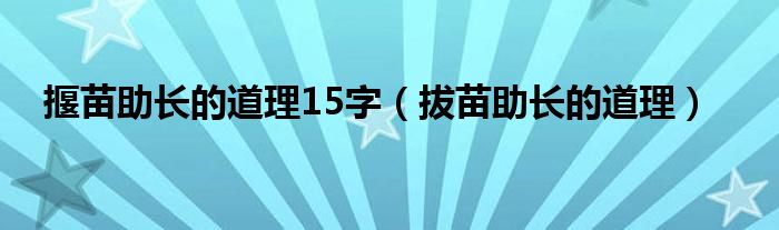 关于揠苗助长的道理15字,拔苗助长的道理这个很多人还不知道,今天菲菲来为大家解答以上的问题,现在让我们一起来看看吧!