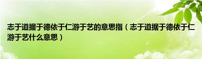 关于志于道据于德依于仁游于艺的意思指,志于道据于德依于仁游于艺什么意思这个很多人还不知道,今天菲菲来为大家解答以上的问题,现在让我们一起来看看吧!