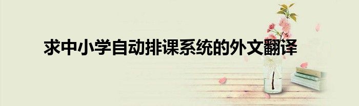 关于求中小学自动排课系统的外文翻译这个很多人还不知道,今天菲菲来为大家解答以上的问题,现在让我们一起来看看吧!