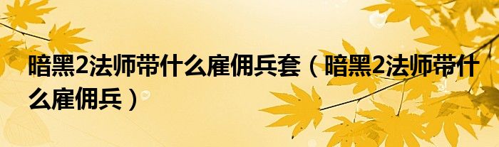 暗黑2法师带什么雇佣兵套(暗黑2法师带什么雇佣兵)