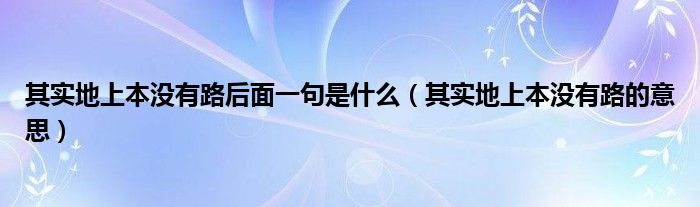 关于其实地上本没有路后面一句是什么,其实地上本没有路的意思这个很多人还不知道,今天菲菲来为大家解答以上的问题,现在让我们一起来看看吧!