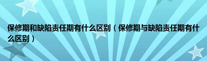 1、保修期:指承包单位对所完成工程的保修期限,超过这个保修期限则无义务实施保修;2、缺陷责任期:指承包单位对所完成的工程产品发生质量缺陷后的修补预留的金额;3、保修期:最低为两年(水、电、装修等),防水为5年,主体结构、基础为设计的合理使用年限(50年);4、缺陷责任期:通常为6个月、12个月、24个月,具体双方在合同中约定。