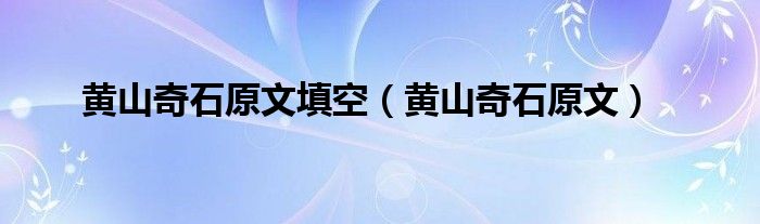 关于黄山奇石原文填空,黄山奇石原文这个很多人还不知道,今天菲菲来为大家解答以上的问题,现在让我们一起来看看吧!