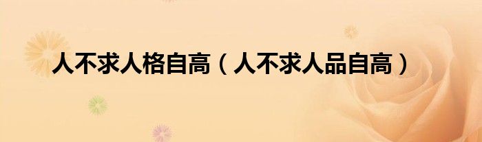 关于人不求人格自高,人不求人品自高这个很多人还不知道,今天菲菲来为大家解答以上的问题,现在让我们一起来看看吧!
