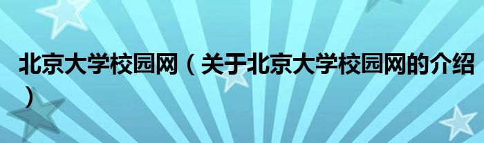 大家好,今天小乐来为大家解答以上的问题。北京大学校园网,关于北京大学校园网的介绍很多人还不知道,现在让我们一起来看看吧!