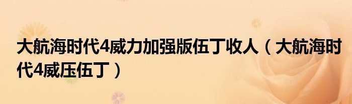大航海时代4威力加强版伍丁收人(大航海时代4威压伍丁)
