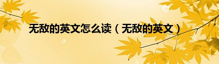 关于无敌的英文怎么读,无敌的英文这个很多人还不知道,今天菲菲来为大家解答以上的问题,现在让我们一起来看看吧!