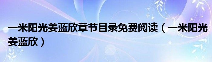 关于一米阳光姜蓝欣章节目录免费阅读,一米阳光姜蓝欣这个很多人还不知道,今天菲菲来为大家解答以上的问题,现在让我们一起来看看吧!