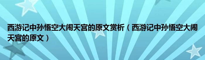 关于西游记中孙悟空大闹天宫的原文赏析,西游记中孙悟空大闹天宫的原文这个很多人还不知道,今天菲菲来为大家解答以上的问题,现在让我们一起来看看吧!
