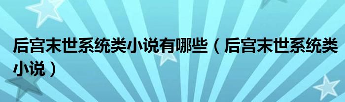 后宫末世系统类小说有哪些(后宫末世系统类小说)