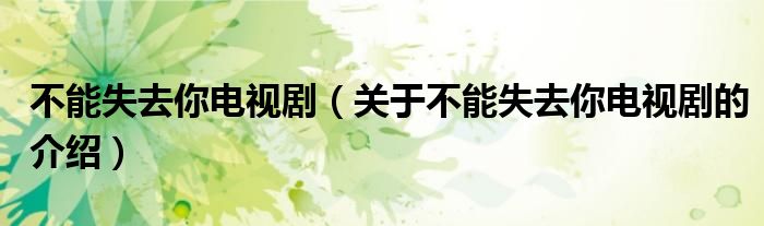不能失去你电视剧(关于不能失去你电视剧的介绍)